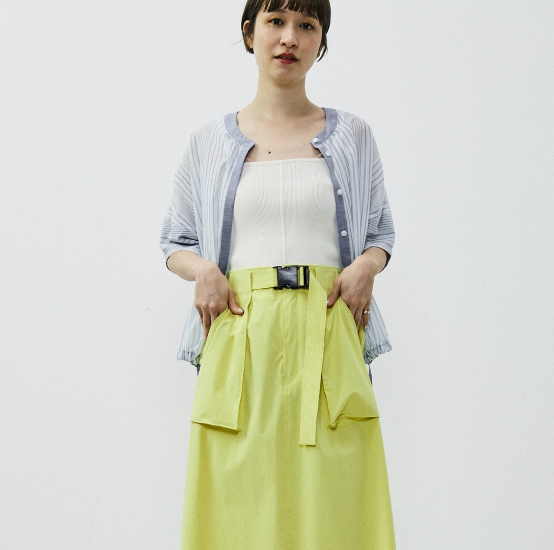 長さも調節可能で、前後でデザインが違うので、どちらを前にしても使えます。INにTシャツやインナーを入れて着てもいいですし、上からトップスを着てスカートとしてコーディネイトするのもオススメです。