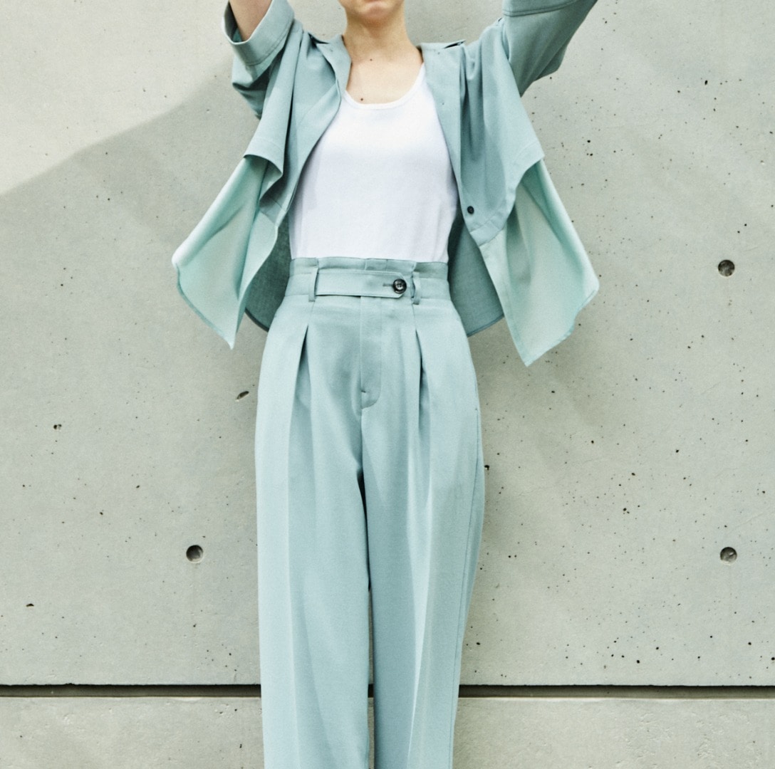 FB517とセットアップにできるワイドパンツ。夏に大人っぽく着れるサラッとした素材のワイドパンツになります。