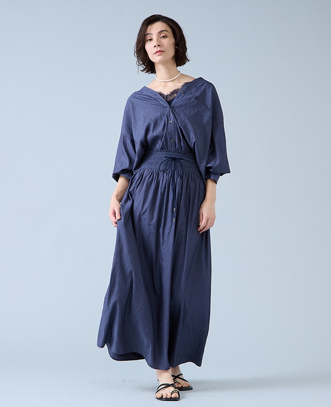強撚割繊フラワープリントギャザーロングスカート ¥29,700税込