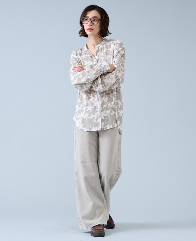 強撚割繊フラワープリントシャツブラウス ¥27,500税込