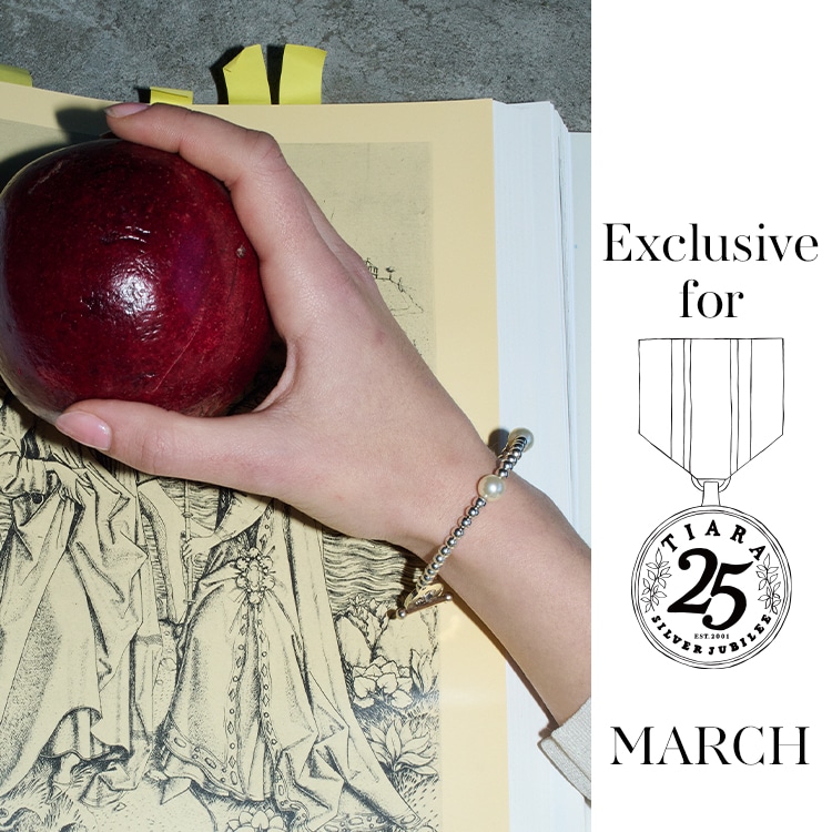 TIARA25周年を記念した特別連載 ”Exclusive for 25 "March" TIARAの25周年を記念して 特別な別注アイテムをご用意。 これまでの感謝と想いを込めて。 ぜひお楽しみください。 25周年Exclusive Items All