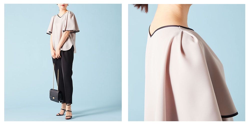 肩に入ったタックが女性らしく華奢に見せてくれます。