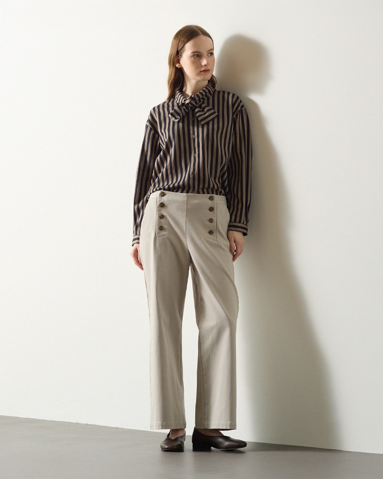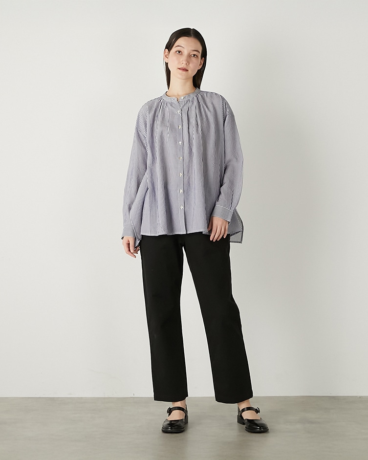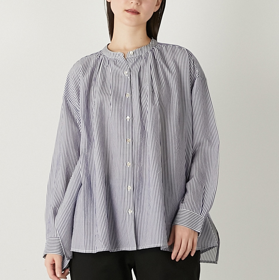 LOGEMENT DE CLAIREバンドカラーストライプシャツ¥13,200