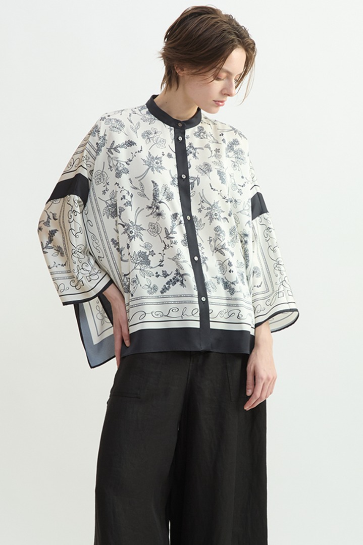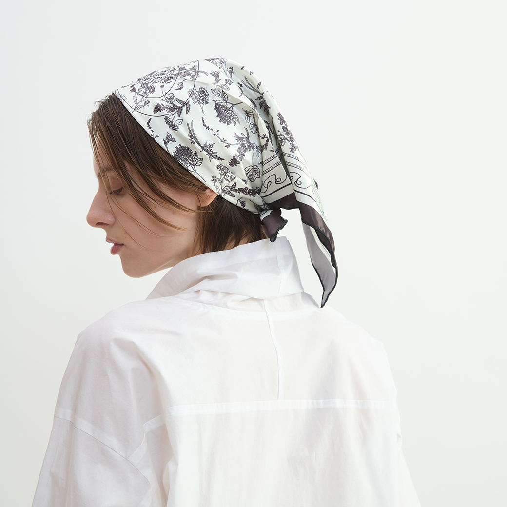 オリジナルのボタニカルプリントをスカーフにしました。