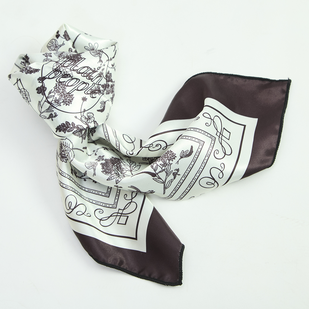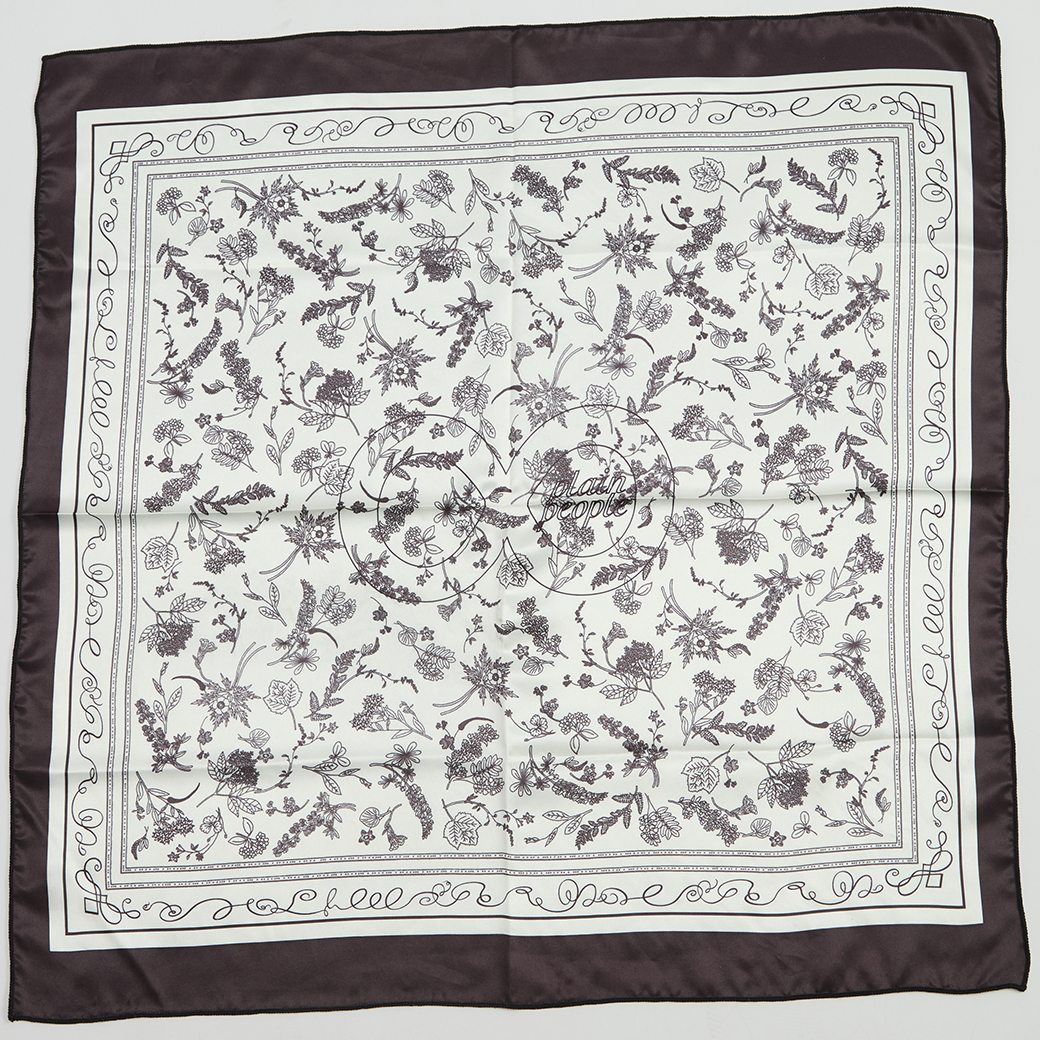 スカーフは、中央にPLAIN PEOPLEロゴを配しています。