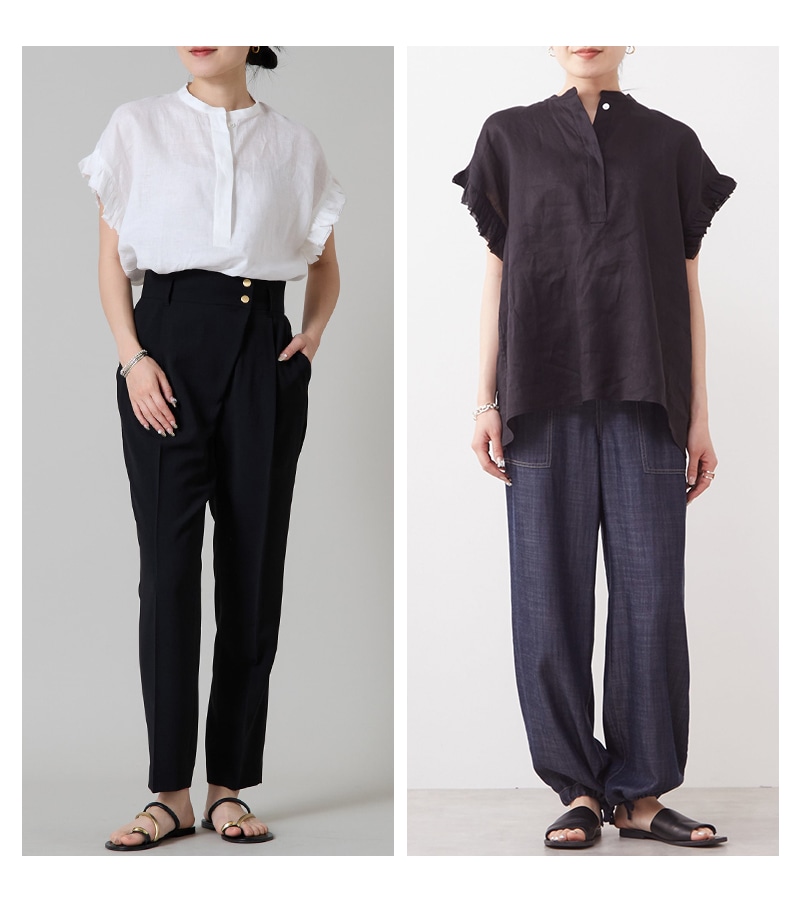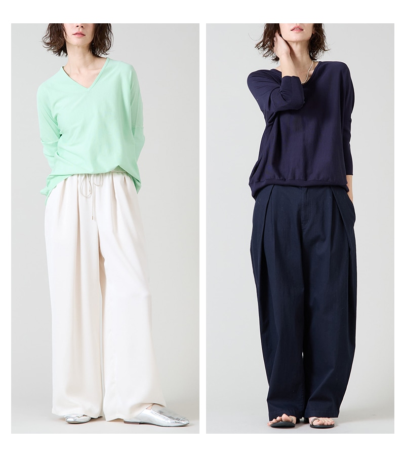 ウエストの若干のゆとりは、お腹周りの気になる方にも無理なくご着用頂けると同時に、より裾のテーパードを強調し、色気のある美脚シルエットを表現してくれています。