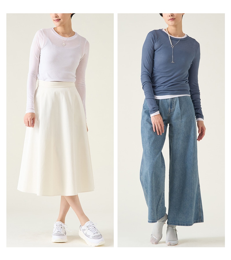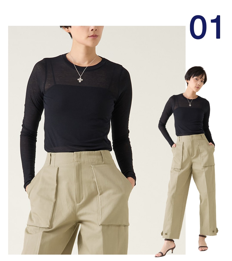 サラッとした着心地で初夏まで使え透けすぎず、程良い大人のシアー感が魅力。