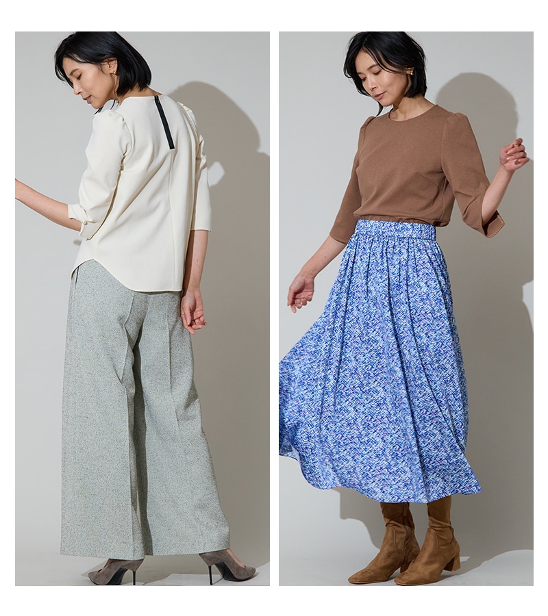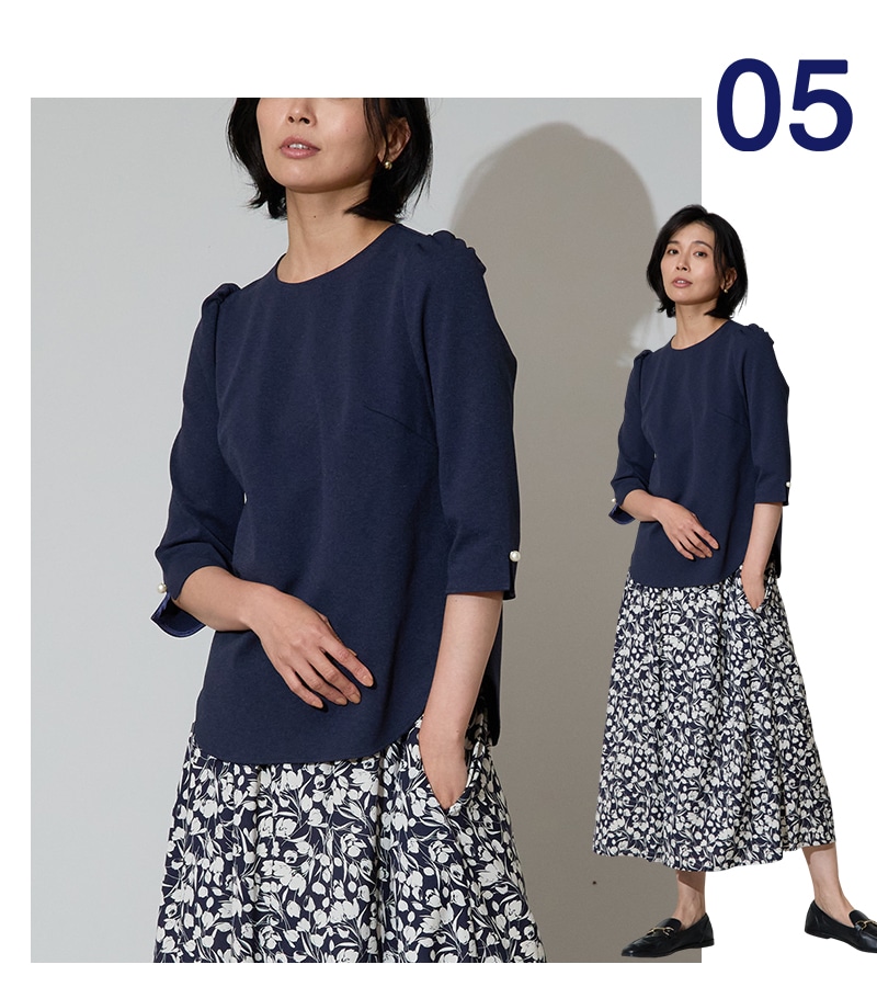 前身はタイプライター、後ろ身はカットソーなので、ブラウス見えしつつも気負わず気軽に着ていただけます。
