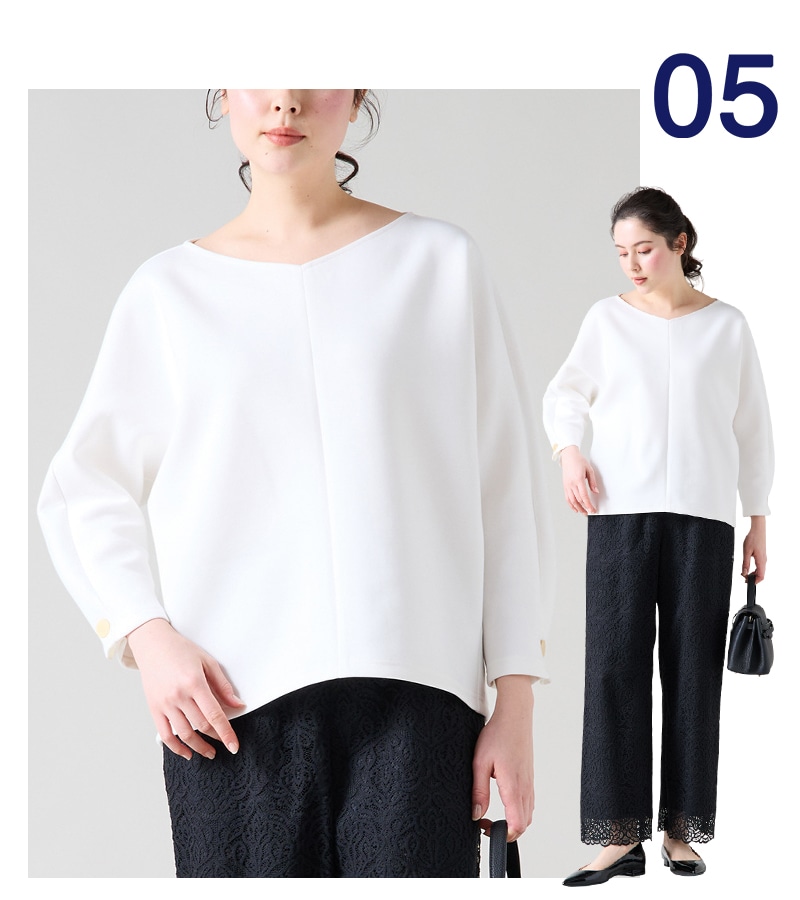 スウェットでも着崩れないきれいなカットソー素材なので、カジュアルでも上品な雰囲気に仕上がります。